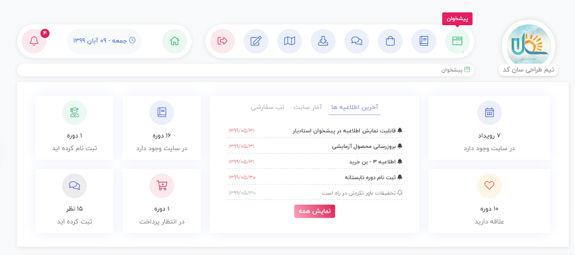 داشبورد وردپرس به صورت کاملا اختصاصی تغییر یافته و نمای زیبایی به بخش کاربری بخشیده است.
